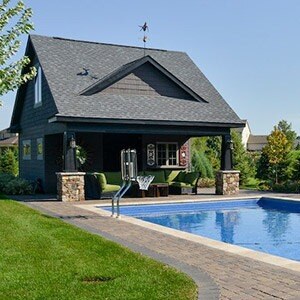 Once your dream pool is complete, you’ll want to live outside in your well-crafted oasis. So it’s only natural that you’ll want to build a pool house or cabana to reside in while you’re there. Not only will a pool house organize clutter, but it will make a great option for pool guest restrooms, shower rooms, and storage for future gatherings. When designing your pool house and/or cabana, we’ll be sure to: